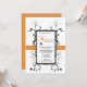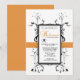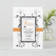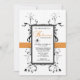 Elegant Halloween costume party invitation with an ornate black frame and pumpkin centre band. The word "Halloween" is preprinted and embellished with a spider.