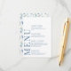 Elevate your rustic Italian theme wedding celebration with an exquisite and simple menu card. Showcasing a delicate pattern of hand drawn blue flowers, this refined design is enhanced by a personalised touch—the bride and groom names on the back, adding a memorable and distinctive element to your special day.