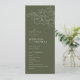 Elegant delicate hand drawn flower illustration and modern script typography details, in dark sage green and white colour, simple and romantic. Great floral wedding programs for modern rustic wedding, country garden wedding, and simple boho wedding in summer and winter.