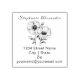 Hand drawn graphic black ink Poppies return address stamp.