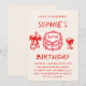 The clean white background and bold red typography create a stylish, contemporary look that works beautifully for both intimate gatherings and lively celebrations. Easily personalize the name, age, date, time, location, and RSVP details to fit your event.