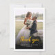 A great and thoughtful way to thank your friends, family, and coworkers who graced you their presence on your your wedding day with this modern photo thank you cards with script hand lettered gold effect "thank you"