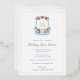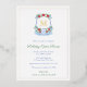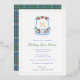 Refined party invitation featuring a hand painted watercolor crest with single letter monogram (in real foil) and a slim border (also in real foil). The crest contains watercolor greenery, blue and white Chinoiserie elements and also festive red and white poinsettia. On the reverse side is a blue green and red tartan (in tones to match the front), created digitally. Shown here for a Christmas or Holidays Open House but all of the text is completely customisable to your needs so could be used as a Wedding Anniversary or Newlyweds Brunch celebration for example.