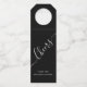 Modern Elegant Handwritten Script Black White Cheers Bottle Hanger Tag. Personalise with you own custom message. Perfect for special occasions and celebrations.