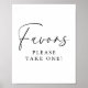 This Elegant Handwritten Script Bridal Shower Favours Poster features an elegant black and white handwritten script design that says "Favours" in a clean, sophisticated font. Make a statement at your bridal shower with this chic sign directing guests to the favour table or area. The simple yet stylish design sets the tone for a classy, modern event. Place this poster in a frame and hang it on the wall or easel, or prop it up on the favours table. The minimalist black and white palette works with any bridal shower colour scheme. This favour sign is ideal for the bride looking to add simple, elegant touches to her bridal shower décor. The handwritten script design adds a personal, intimate feel. Surprise and delight your guests with this beautiful poster that elevates your bridal shower to the next level of sophistication.