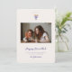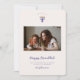 Celebrate the Festival of Lights with this elegant double-sided Hanukkah photo card featuring a modern menorah design and customisable family photo layout. The front highlights your warm holiday greeting with space for a favourite picture, while the back offers room for three additional photos surrounded by festive Hanukkah details. Personalise with your family name and message to create a meaningful keepsake that shines as bright as the holiday itself. Perfect for sending love, light, and cherished memories to friends and family this Hanukkah season.