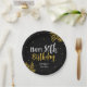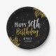 Elegant Happy 50th Birthday Gold Foliage Party Paper Plates. Celebrate a milestone in style with this personalized plates. Featuring a sophisticated black background with luxurious gold foliage, this design adds a touch of class. These plates are perfect for making the guest of honor feel extra special. Make turning 50 unforgettable with this timeless and chic design!