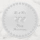 Elegant happy anniversary table confetti with two silver hearts at the centre surrounded by a circle of hearts. Mr. & Mrs and Happy Anniversary can be personalised. Text is only of the front side of medium and large dots.