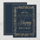 Wish your family and friends a Happy Holiday with our elegant festive foliage, florals & snowflakes faux gold foilage photo frame. Design features a festive typographic faux gold greeting "Wish You A Joyous & Happy Holiday". Personalise with your family's signature and year. The navy blue and rich gold frame create an elegant and festive design. Artwork hand-drawn by Moodthology Papery.
