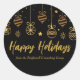 Elegant Happy Holidays Black Gold Custom Business Classic Round Sticker