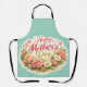 Description celebrate mom while she works her magic in the kitchen this beautiful happy Mother's Day apron features a stunning wreath of pink roses and white daisies on a soft calming teal background practical stylish and full of heart. It's a wonderful way to show your appreciation for all those Sunday roast and home