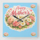 Description give a gift that stands the test of this stunning happy Mother's Day wall clock feature is a beautiful wreath of pink roses and white daisies on a calming teal background this elegant and functional piece of home decor as a touch of spring charm to any kitchen lounge or bedroom a wonderful way to remind them how much she's loved every hour