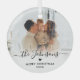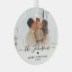 Elegant Minimalist Family Name and "Merry Christmas" text Photo Ornament. Features your favourite family photo, with handwritten calligraphy script "family name", "Merry Christmas" text, little heart motif and year in black and white (white gradient photo overlay). Easy to personalise it. Photo tip: crop your photo to square form before upload it.
