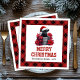 Bring cozy farmhouse charm to your holiday table with these beautifully designed Christmas napkins featuring an adorable watercolor Highland cow sitting in a rustic bucket, surrounded by vibrant holly berries, pine branches, and red poinsettias. The classic red and black plaid/buffalo/tartan pattern adds a warm seasonal touch, blending rustic country style with festive Christmas elegance.