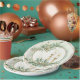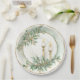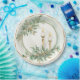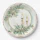 This elegant plate design features a decorative faux gold border design with two sage green leaf groupings with holiday candles.