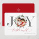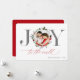 This elegant Christmas card features the word "Joy" with your photo as the "o". It's in silver and red with room on the back for your holiday / Christmas greeting.