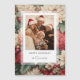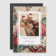 Elegant watercolor style floral pattern featuring assorted Christmas botanicals in white, burgandy red and green, with opaque bordered photo template.