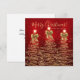 Elegant Merry Christmas / Happy Holidays "Card" Gold Trees with bows on red with a custom text.