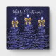 Elegant Holiday Navy Christmas Trees Bows Gold Plaque