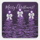 Elegant Holiday Purple Christmas Trees Bows Silver Square Sticker