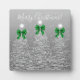 Elegant Holiday Silver Christmas Trees Green Bows Plaque