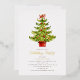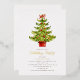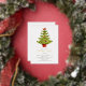Real gold foil calligraphy highlights the phrase “Holiday Party” beside your company name, paired with a sleek dark grey sans serif font for a polished, contemporary layout. The reverse side features a coordinating tree illustration with editable fields for guest name and event date—ideal for personalised holiday stationery.