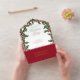 Elegant and refined holly and berries frame "Christmas Party" design with RSVP real gold foil text (inside) with gold-toned text on a dusky red background on the outside.
