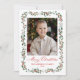 Share festive greetings with this elegant holiday photo card featuring a vertical family photo framed by watercolor holly berries and greenery. “Merry Christmas” appears in red calligraphy script, with your family name and year displayed below in classic serif lettering. The back includes an additional photo with space for your holiday message, accented by a border of watercolor greenery and holly berries with a red bow at the centre. A timeless Christmas card design to send to family and friends.