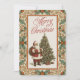 Send timeless holiday warmth with this beautiful vintage-style Christmas card featuring a classic Victorian Santa Claus with sack and decorated tree, framed by an ornate holly, berry, and gold border. Perfect for traditional Christmas greetings, family updates, corporate holiday cards, or anyone who loves nostalgic elegance. Premium cardstock with rich colors and luxurious detail – includes matching envelope. Inside fully customizable. The most charming way to wish “Merry Christmas” this season!