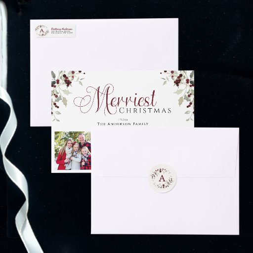 Elegant Holly Family Photo Christmas Coffee Mug
