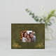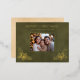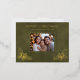 Elegant Holly Family Photo Green Faux Leather Foil Holiday Postcard
