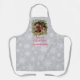 Elegant Holly Wreath Merry Christmas Photo Holiday Apron. Spread holiday cheer with these elegant Merry Christmas kitchen apron. Featuring a classic holly wreath design with vibrant red berries and green leaves, set against a subtle grey background adorned with delicate white snowflakes. This festive design is perfect for sending warm wishes to friends, family, and colleagues during the most wonderful time of the year. Add your photo and family name.