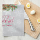 Elegant Holly Wreath Merry Christmas Photo Holiday kitchen towel. Spread holiday cheer with these elegant Merry Christmas kitchen towel. Featuring a classic holly wreath design with vibrant red berries and green leaves, set against a subtle grey background adorned with delicate white snowflakes. This festive design is perfect for sending warm wishes to friends, family, and colleagues during the most wonderful time of the year. Add your photo and family name.