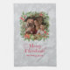 Elegant Holly Wreath Merry Christmas Photo Tea Towel