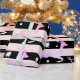 Modern and pretty faux holographic Christmas reindeer pattern with blush pink and black stripe.