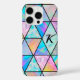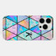 Elegant holographic chic geometric iPhone 16 Case. This iPhone case features an abstract pattern of holographic triangles that shimmer with an iridescent glow, shifting from pink to blue to yellow as light moves across the surface. The geometric design creates a modern, high-tech feel, with each square adding depth and a touch of mystique.