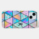 Elegant holographic colourful geometric iPhone 15 Case. To make it extra special, it is also monogrammed and personalised with name or initials or any text you like, click the "customise further" link and use the design tool to modify the design if you like.