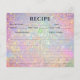 Elegant Holographic Gold Glitter and Gold Texture Purple Pink Blue Recipe Cards