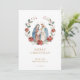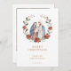 This card features an exceptionally elegant and spiritual design, showcasing a delicate illustration of the Holy Family surrounded by a wreath of flowers and Christmas foliage in soft tones. The composition conveys serenity, faith, and a deep sense of devotion, making it a perfect choice for those wishing to share their Christmas greetings with a meaningful and religious focus. The harmonious colors and refined aesthetic add a warm and sophisticated touch, ideal for celebrating the birth of Jesus with beauty and respect.