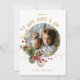 Brilliant red Christmas holly and greenery wreath with festive gold lights surround your favourite photo, the perfect card to wish your family and friends Hope, Peace and Joy for this wonder-filled holiday season