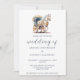 Elegant Horse Drawn Carriage Wedding Invitation. Join us for an elegant celebration as we exchange vows surrounded by the rich hues of a romantic wedding. Our wedding will feature a beautiful blend of a horse drawn carriage pulled by a beautiful white horse in romantic blue colours, all accentuated by the timeless charm of script calligraphy. Embrace the season's warmth and elegance with us on this special day.
