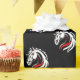 The design features a seamless pattern of horse heads rendered in white, with intricate detailing that captures the elegance and grace of the animal. Each horse head is accentuated with bold red lines that add depth and dynamism to the design. The black background provides a striking contrast, enhancing the visual appeal of the white and red elements. The overall effect is one of sophistication and style, perfect for adding a touch of elegance to any gift-giving occasion.