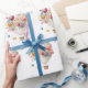 Celebrate any special occasion with this beautiful watercolor painted hot air balloon and flowers wrapping paper! There are even dainty little butterflies fluttering about.