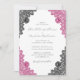 Elegant Hot Pink and Black Floral Lace Wedding Invitation
