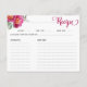Elegant Hot Pink Floral Recipe Bridal Shower Enclosure Card