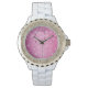 Make every moment sparkle with this elegant hot pink glitter drip rhinestone watch. The glamourous design features vibrant hot pink glitter drips cascading over a soft, shimmering background, enhanced by dewy glow effects for a radiant, eye-catching finish. Accented with sparkling rhinestones, this chic timepiece is perfect for birthdays, bachelorette parties, bridal gifts, or anyone who loves girly, glam, and modern style. A luxe accessory that adds sparkle and sophistication to any look.