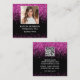 Elegant Hot Pink Glitter Photo QR Code Black Square Business Card