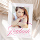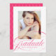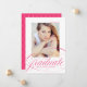 Elegant graduation announcement featuring the graduate's senior photo and a hot pink modern calligraphy font. Personalise the photo graduation announcements by adding the graduate's name, school name, and graduation year. The back of the hot pink graduation announcements features a stylish hot pink and white trellis pattern.