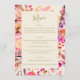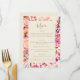 Showcase your wedding menu in elegant style with this beautiful watercolor floral design featuring vibrant pinks, purples, and warm coral botanicals. The sophisticated border of hand-painted flowers frames your custom menu text, with elegant script and serif typography creating a refined, romantic presentation. Fully customizable to match your wedding meal selections and event details, this menu card coordinates perfectly with garden weddings, spring celebrations, and romantic themed events.