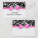 Elegant hot pink ribbon and bow business card template. This pretty hot pink zebra business card design is easily customised by simply choosing the "Customise it!" button to begin adding your event details, font style, font size & colour, and wording. Please note - all of the stickers, cards and invitation designs you will find on Zazzle are printed graphics with no actual jewels, bows, raised, embossed, or added parts or pieces.